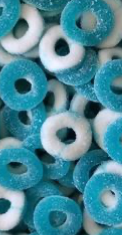sirop de glucose,sucre , eau , gélatine de bœuf, amidon modifié de pomme de terre , acidifiants: E330,E270,E296, arômes , agent d’enrobage : cire de carnauba , colorant E133, SANS GLUTEN, HALLAL