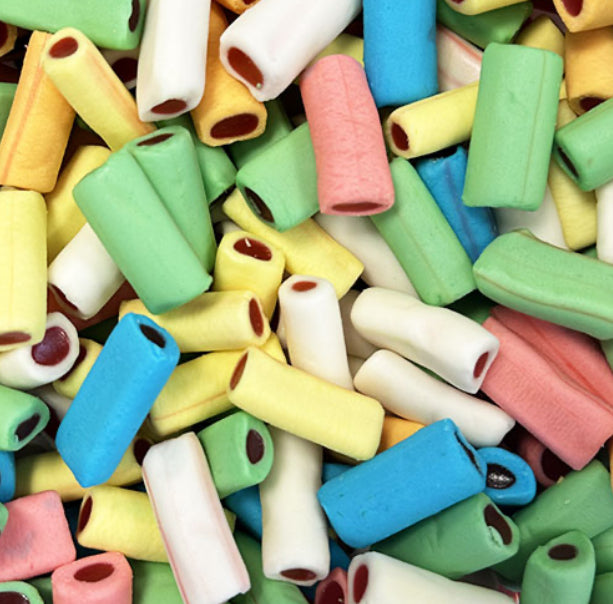 Ingrédients : Sirop de glucose-fructose, sucre, amidon, farine de blé (gluten), eau, acidifiants (E330, E270), amidon de pomme de terre, humectant (E422), correcteur d'acidité (E332), graisse végétale (palme), gélatine de bœuf halal, arôme artificiel, colorants (E100, E129, E133), agents d'enrobage (huile végétale: palme), émulsifiant (E322). Le colorant E129 peut avoir des effets négatifs sur l'activité et l'attention chez les enfants.